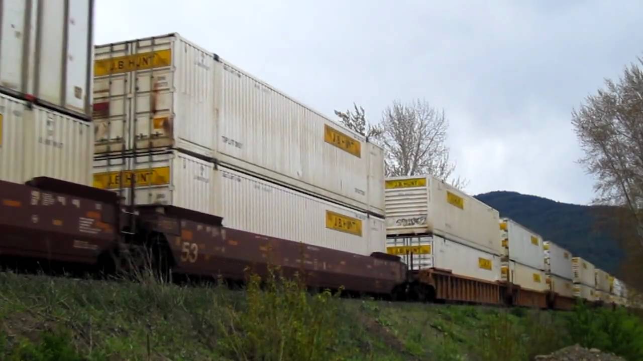 Bnsf Four Engine Intermodal Piggy Back Freight Train Sandpoint Idaho Train Sandpoint Idaho Sandpoint